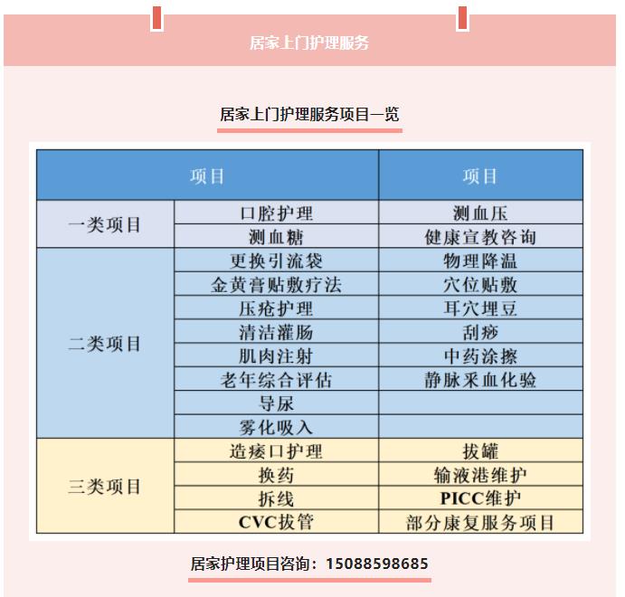 为满足新防控形式下长期居家、卧床行动不便的患者康复护理的基本需求,我院将持续为市区范围内的患者提供部分适合在家庭环境开展的上门护理、康复、保健、创面治疗服务。