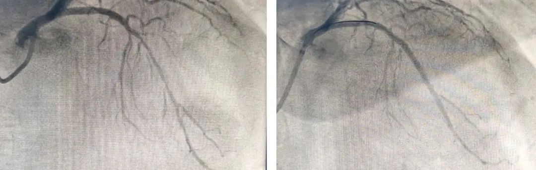 造影结果提示前降支及右冠病变,阿公的前降支近段完全闭塞病变,于前降支植入支架一枚,通过开通狭窄或闭塞的冠状动脉,从而达到解除狭窄,改善心肌血供的目的。术后,患者的血压及症状都得到明显改善。