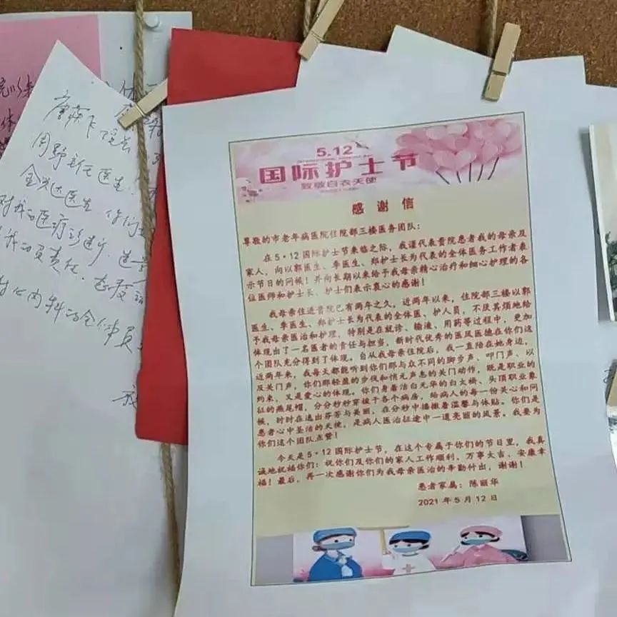 在定期开展的病区科普活动中,为了让听不懂普通话的患者更好地了解科普内容,每次组织病区科普,医护人员总是普通话说一遍,温州话说一遍;患者因为病情出现失禁的情况,护理人员总是第一时间上手为病人更换衣物床单;遇到长期住院治疗而不舍得买营养品的患者,医护人员总是将好吃的送到他们手中……一点一滴的细心付出,变成了心血管内科宣传栏上许许多多的感谢信与办公室中的一面面锦旗。