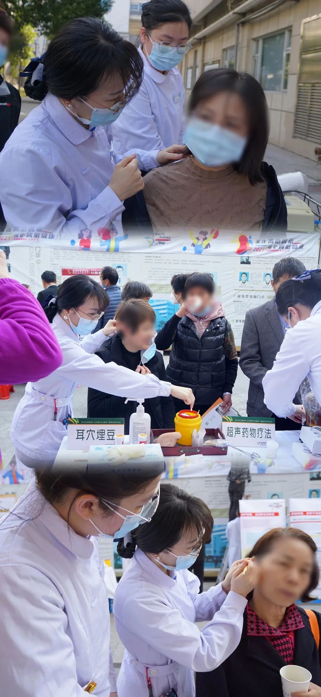 ▲市民体验耳穴埋豆、超声疗法、中药花草茶