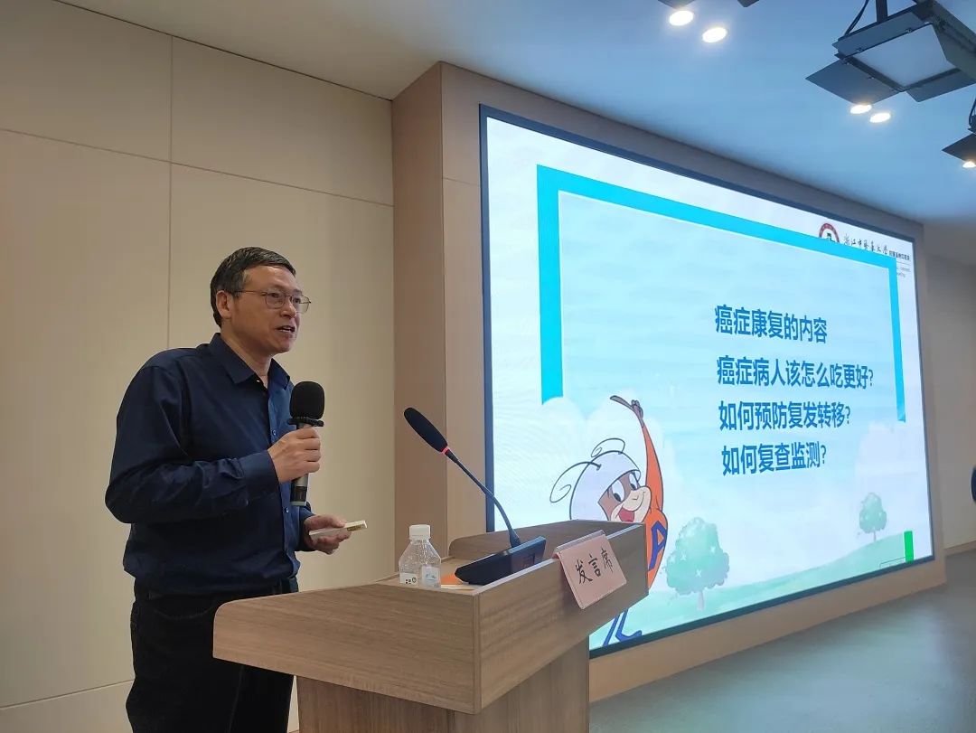 4月19日上午,我院肿瘤科专家黄兆明主任受邀为瓯海区癌症康复协会100多位康复人士开展公益科普讲座,为广大市民群众宣传“早筛查、早诊断、早治疗”及健康饮食、适度锻炼、定期复查等癌症防治及康复理念。