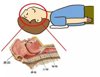 ▲鼻咽喉是连在一起的,头部充分后仰可减少滴鼻液流入喉咙