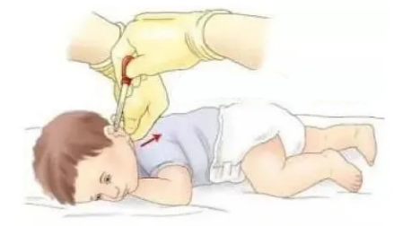 ▲用手指把栓剂尖端部份插入肛门括约肌直到约2cm深(婴儿超过约1.25到2.5公分)的位置。