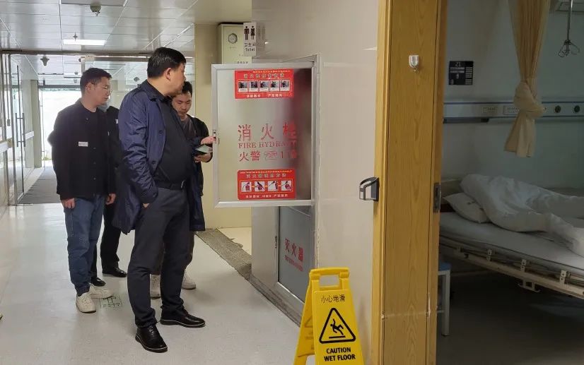 检查过程中,苏朝辉常务副院长提出了“四项确保”:确保各消防栓完好且处于备用状态,确保灭火器配置到位且压力表指针处于正常范围,确保烟雾报警器具备高灵敏度且火警传达通道畅通,确保消防通道无堵塞、无积水、有标识、有指示灯。