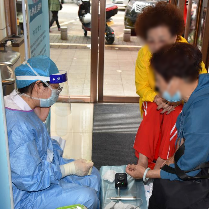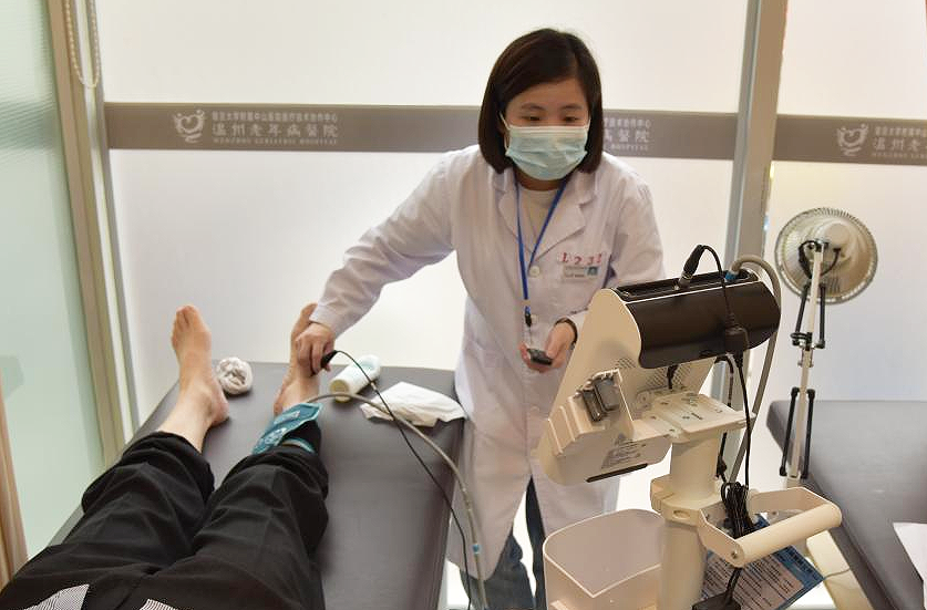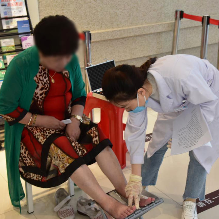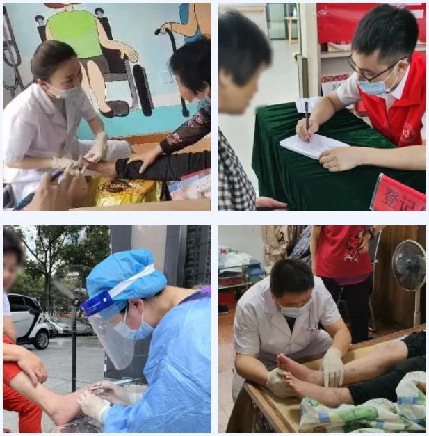 ▲我院创面修复科护理团队及治疗师为患者提供足底血流检测、足部疾病评估及护理等服务。