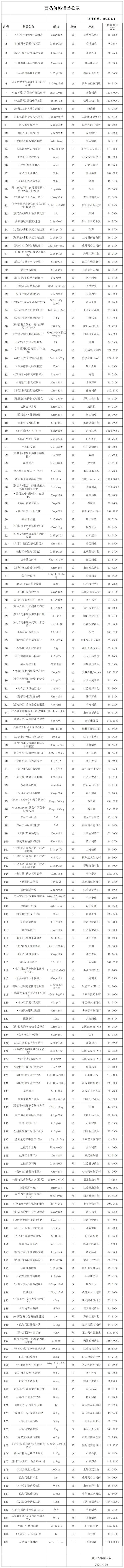西药价格调整公示