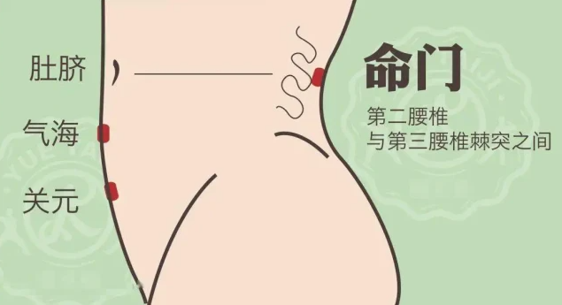 命门穴又名精宫,督脉之穴,在第二腰椎之下,与脐相对。其气与肾通,是生命之根本,是维护生命的门户。主治五劳七伤、肾虚腰痛及各种虚寒病症。