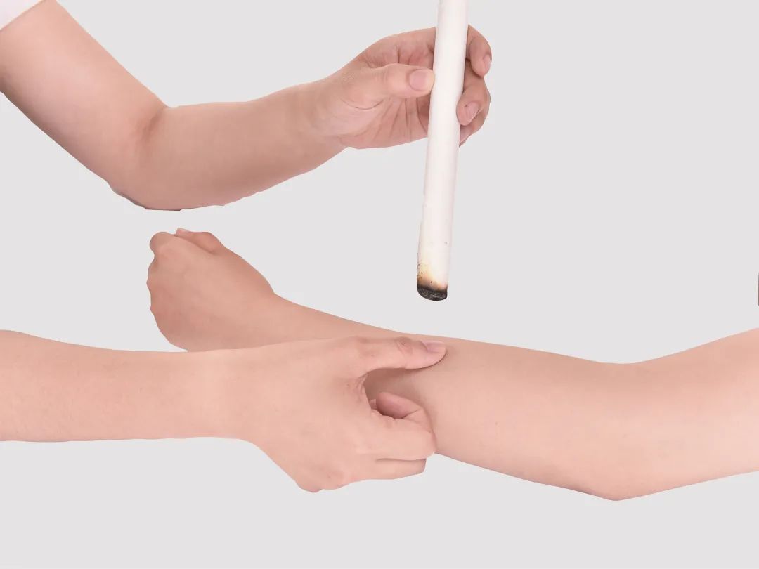 艾条灸也称艾卷灸,将艾条一端点燃后,对准所需穴位或局部进行熏灼的一种方法。一般每次每穴灸10-20分钟,以皮肤出现红润为度。