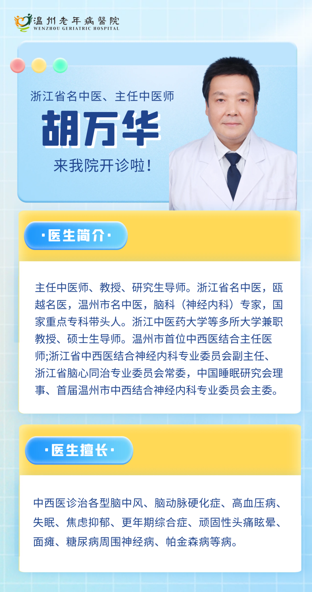 即日起,胡万华主任将在我院名医馆正式开诊,门诊时间为每周四上午,患者可通过以下方式挂号预约: