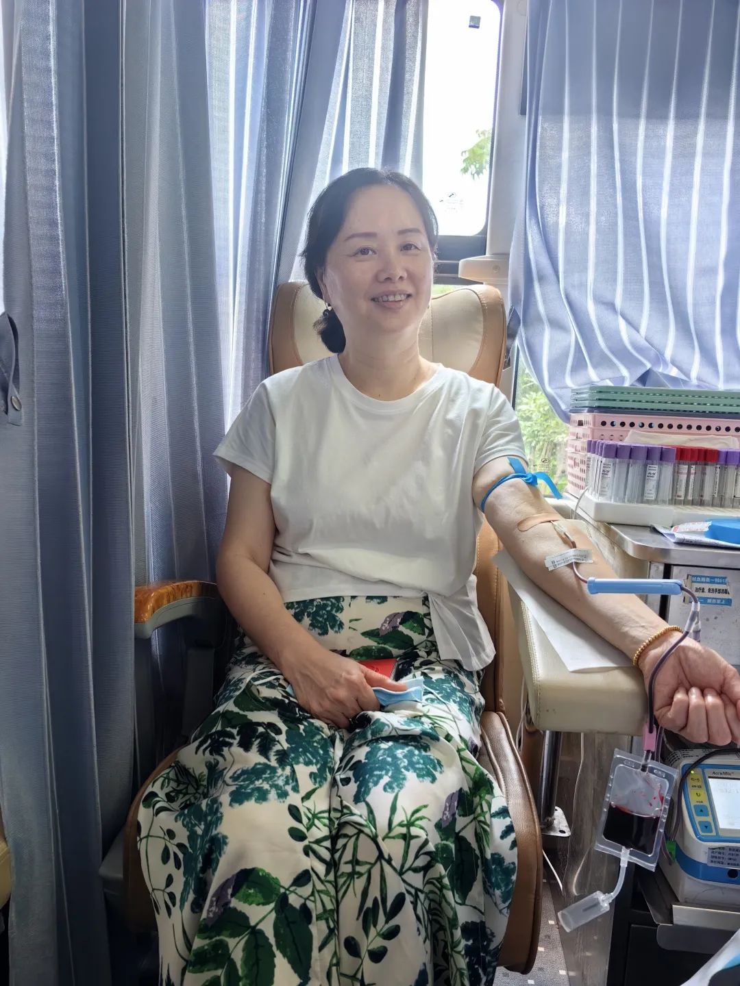 在一系列前期检查筛选合格后,大家有序坐到采血位上挽起袖子,一股股承载着爱心的温暖血液,缓缓流入储血袋,输向最需要的地方,他们正在用实际行动彰显医务人员救死扶伤的生命本色。