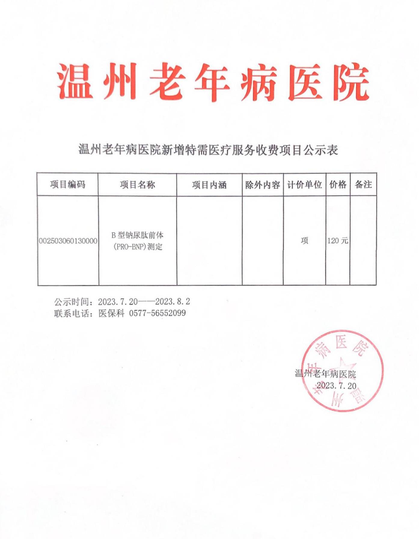 新增特需医疗服务收费项目公示(2023年7月20日)