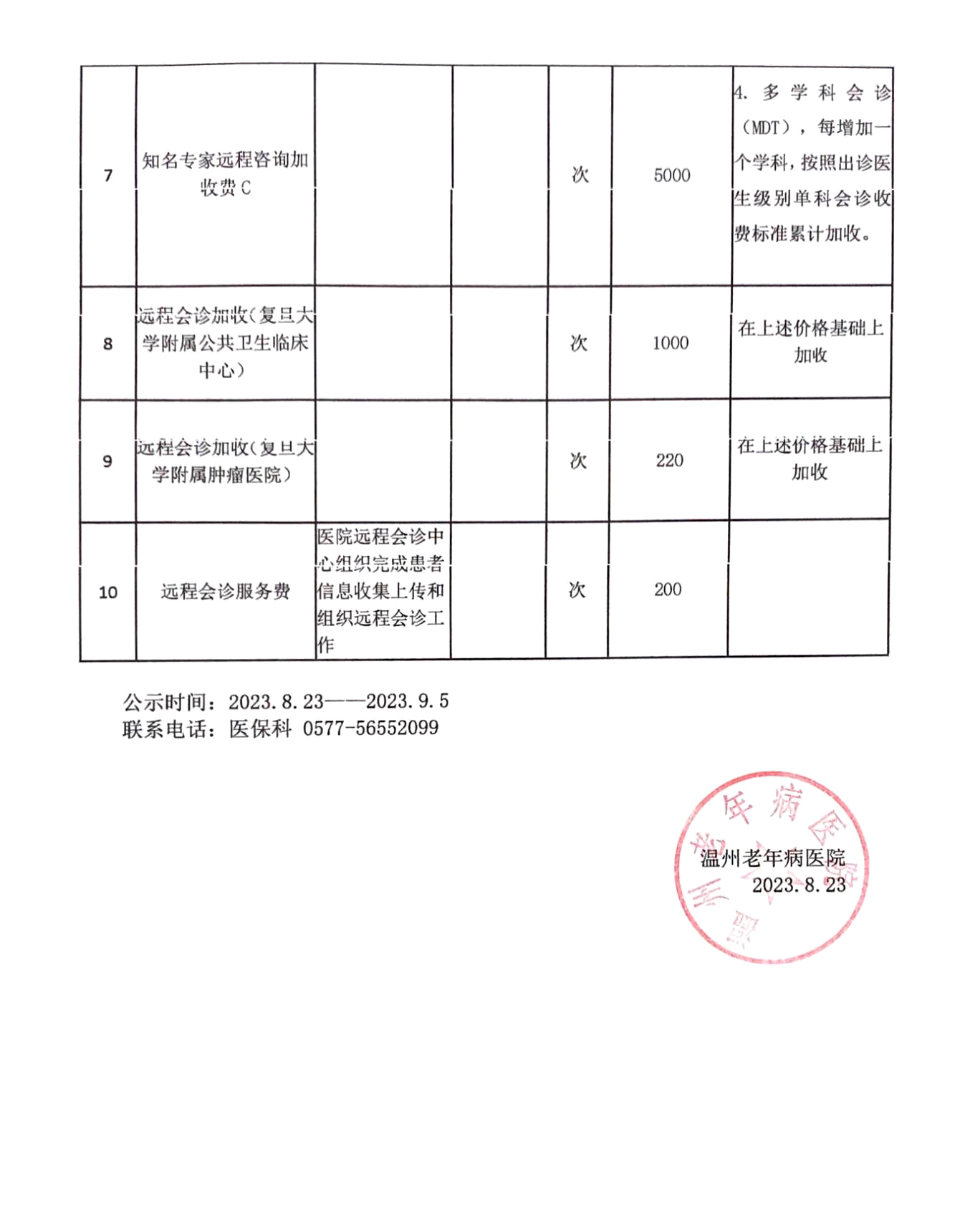 新增特需医疗服务收费项目公示(2023年8月23日)