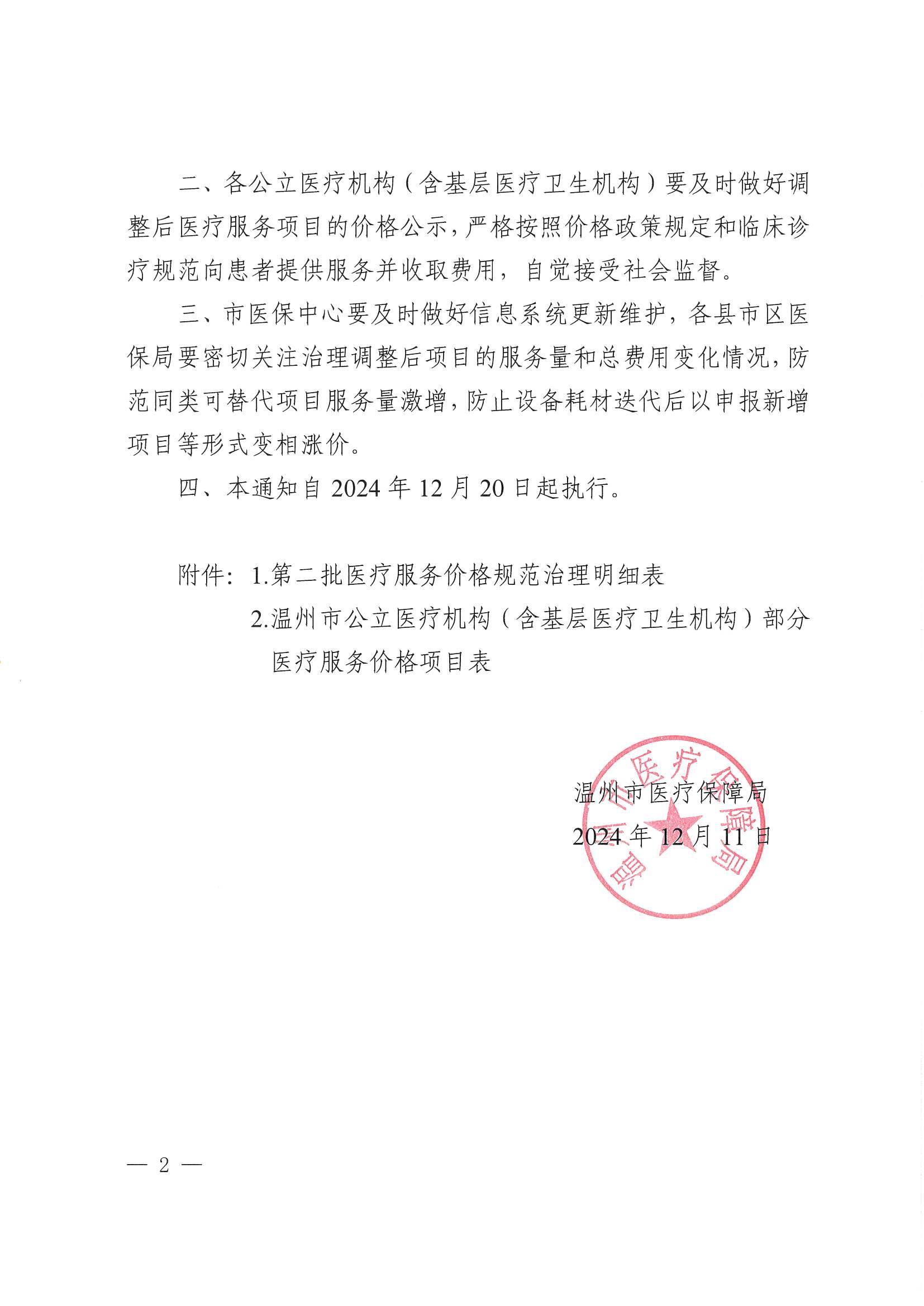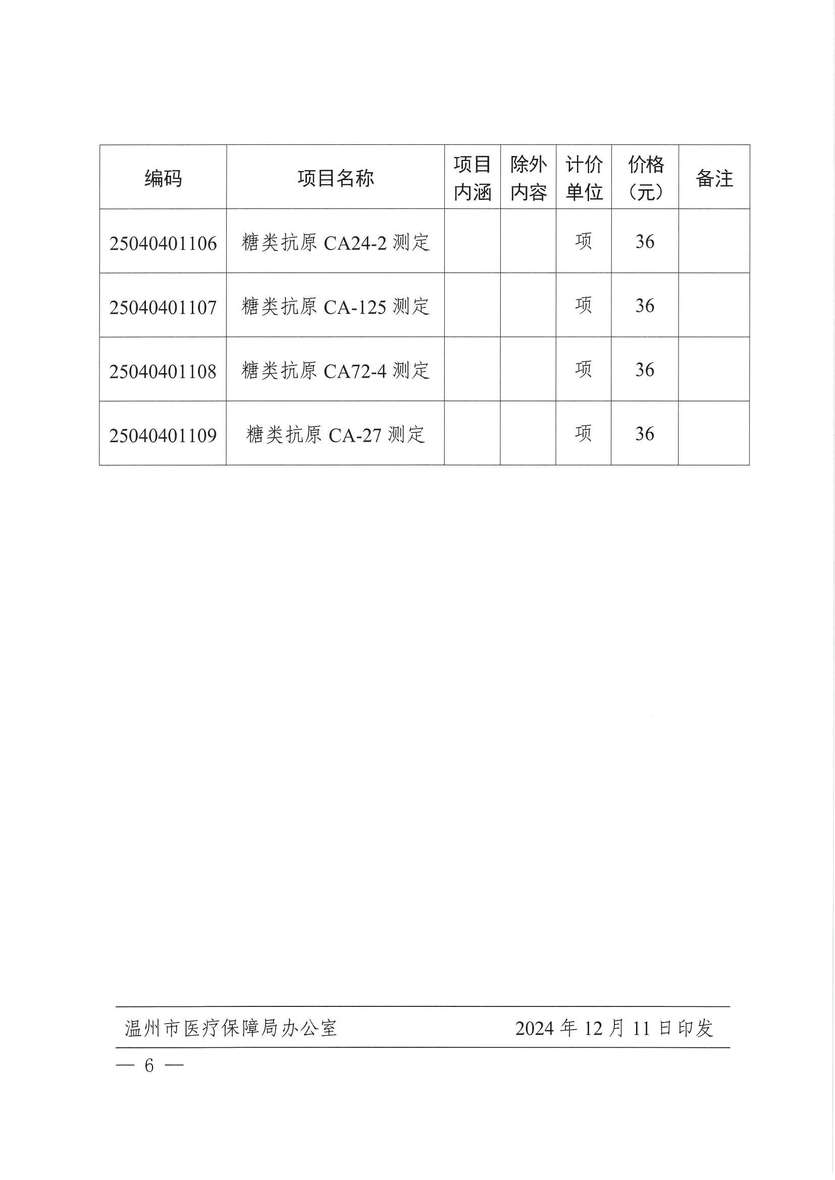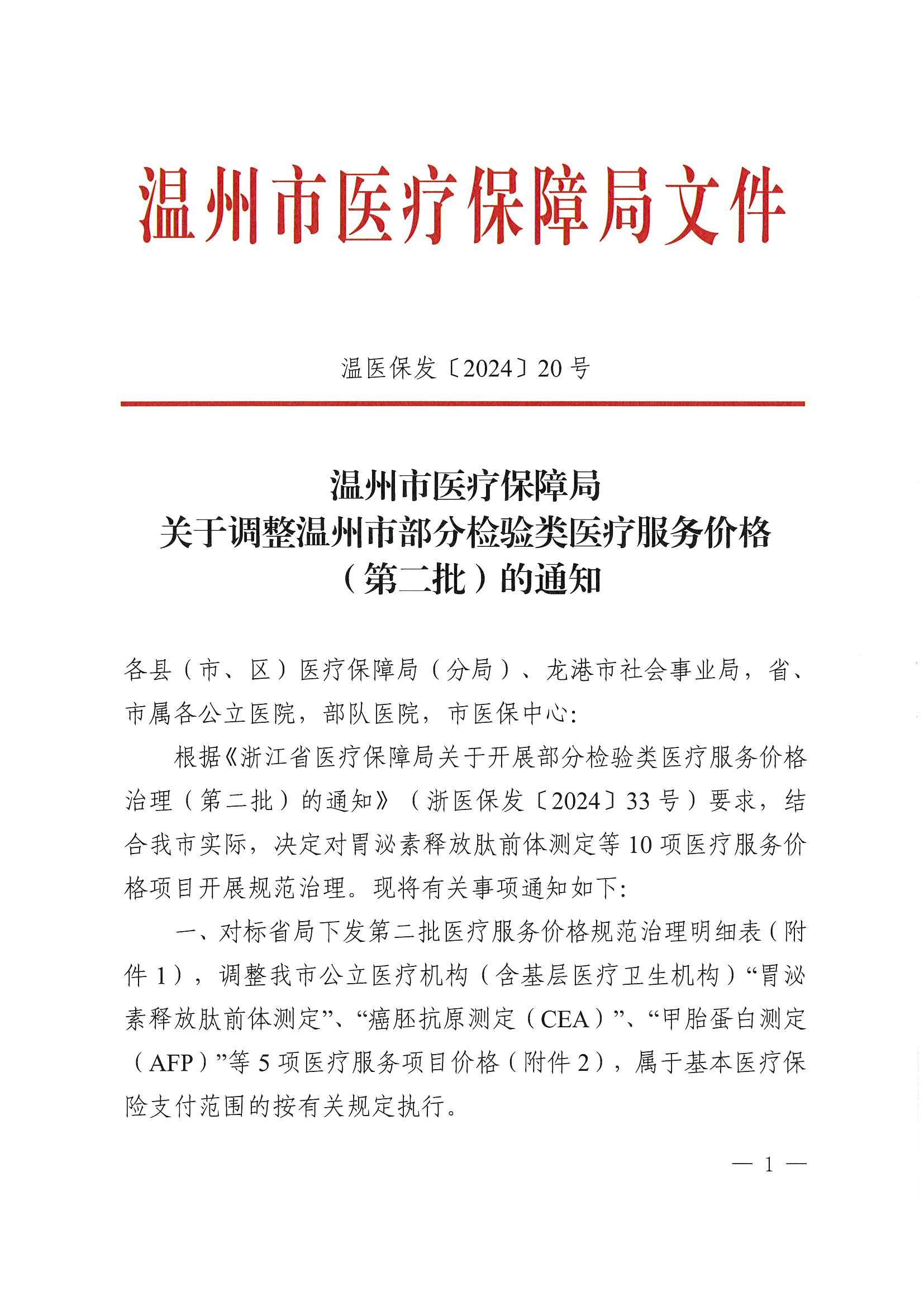 温医保发〔2024〕20号温州市医疗保障局关于调整温州市部分检验类医疗服务价格(第二批)的通知