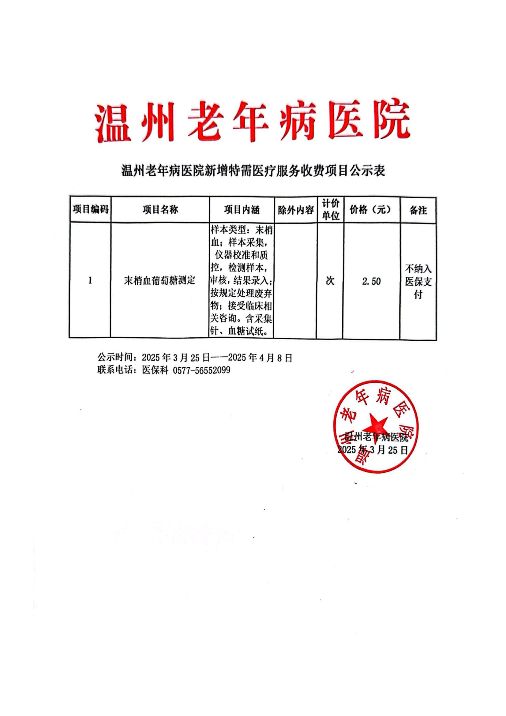 温州老年病医院新增特需医疗服务收费项目公示